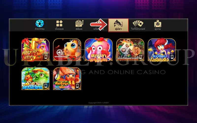 หมวดหมู่ปลาซึ่งมีทั้งหมดเจ็ดเกมที่แตกต่างกัน จากเกมหมุนวงล้อแบบดั้งเดิม ที่นี่ผู้เล่นสามารถสนุกตื่นเต้นกับการยิงปลาเพื่อรับรางวัล เริ่มต้นเดิมพันขั้นต่ำเพียง 0.1 บาท เป็นทางเลือกที่สนุกแทนวงล้อหมุนและนำเสนอวิธีใหม่ทั้งหมดในการชนะ