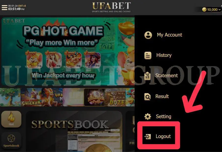 2.เมื่อเข้าสู่ระบบ ยูฟ่าเบท เมนูจะปรากฏขึ้น มองหาตัวเลือกการออกจากระบบแล้วคลิก ง่ายมาก!