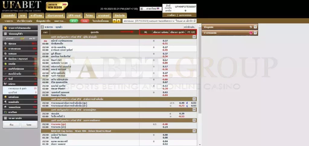 การเดิมพันเต็มเวลานี้ขึ้นอยู่กับอัตราต่อรองที่กำหนดโดยแพลตฟอร์ม ทีมจะมีรหัสสีเพื่อแยกแยะระหว่างทีมรองและทีมเต็ง