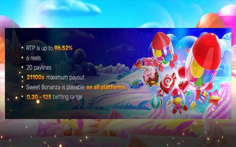 สล็อตวิดีโอนั้นน่าสนใจ ดังนั้นผู้เล่นจึงไม่สามารถละสายตาได้ โดยเราได้มีระบบ ทดลองเล่นสล็อต Sweet Bonanza สำหรับผู้ใช้ได้โดยไม่ต้องใช้เงินจริงเพื่อเรียนรู้เกี่ยวกับเกม ที่พื้นหลังเต็มไปด้วยโคนไอศกรีมและมาร์ชเมลโลว์ขณะเล่น ประสบการณ์การเล่นเกมมือถือ Sweet Bonanza มีช่องเพย์ไลน์ 20 เส้นบนตาราง 6×5 ที่เป็นผลไม้และขนมหวานหลากสีสัน รูปแบบทั่วไป โดยจะหมุนวงล้อและหวังจะได้ชนะเพื่อผ่านด่านไปอีกระดับ หากเมื่อคุณชนะแล้ว จะมีฟังก์ชันหมุนแทรกสัญลักษณ์ใหม่ลงบนกระดาน เพื่อทำให้สนุกขึ้น ผู้เล่นยังนะการหมุนรอบโบนัสเพื่อชนะรางวัลมากขึ้นไปอีก ผู้เล่นเข้าสู่รอบโบนัสโดยการจับคู่สัญลักษณ์ตรงกันสี่ตัวบนวงล้อ เกมส์ Sweet Bonanza มีหกระดับพร้อมความท้าทายที่ไม่เหมือนใคร แม้แต่การเดิมพันเพียงเล็กน้อยก็สามารถชนะใน Sweet Bonanza เครดิตฟรีไม่ต้องฝาก ได้ ดังนั้นทุกคนจะไม่เสียประโยชน์จากแมชชีน