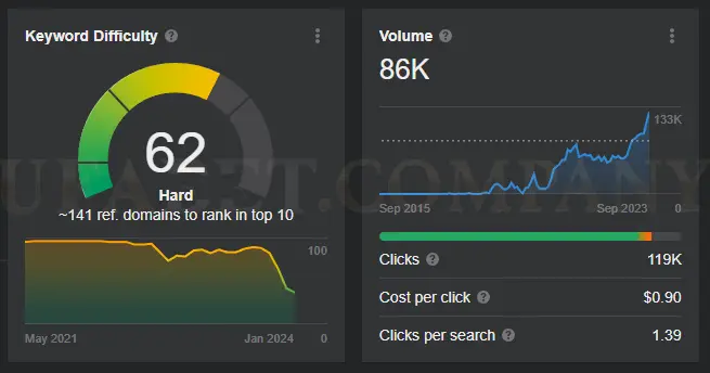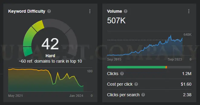 ปีเริ่มต้นด้วยจำนวนการค้นหาที่แข็งแกร่งที่ 1,185,648 ในเดือนมกราคม โดยมีการแข่งขัน SEO ที่ดุเดือดโดยมีคะแนนความยากของคำหลักอยู่ที่ 91 คะแนน อย่างไรก็ตาม สภาพแวดล้อมที่มีเดิมพันสูงนี้ ได้เห็นการเปลี่ยนแปลงที่เปลี่ยนแปลงภายในเดือนเมษายน 2023 เนื่องจากความสนใจในการค้นหา เพิ่มขึ้นเป็น 1,480,186 น่าประหลาดใจที่การเพิ่มขึ้นอย่างรวดเร็วนี้มาพร้อมกับสภาพแวดล้อมทางการแข่งขันที่ลดลงเล็กน้อย โดยมีความยากของคีย์เวิร์ดลดลงเหลือ 88 ช่วงเวลานี้เน้นย้ำถึงความหลงใหลที่เพิ่มมากขึ้นของ UFA Thai ท่ามกลางภูมิทัศน์การแข่งขันที่เปลี่ยนแปลงไปอย่างละเอียด