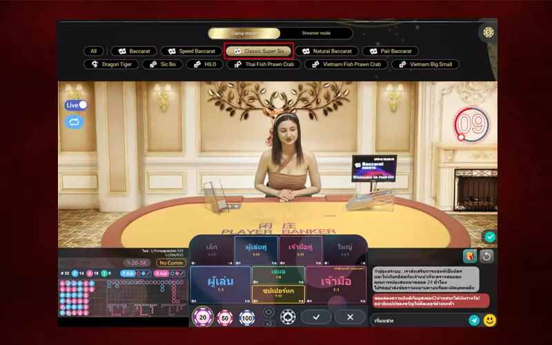 UFA Casino นำเสนอ Classic Super Six ที่มีเสน่ห์พร้อมสองโต๊ะที่น่าดึงดูดใจ ด้วยรูปแบบการเล่นและกติกาที่คล้ายกับรุ่นคลาสสิค เลย์เอาต์นี้เพิ่มความเป็นเอกลักษณ์ โหมด No Comm มีพื้นที่เดิมพัน Super Six สร้างประสบการณ์ที่น่าสนใจสำหรับผู้เล่นที่แสวงหาความแปลกใหม่ในเกมที่พวกเขาชื่นชอบ มีโต๊ะให้เลือก 2 โต๊ะ