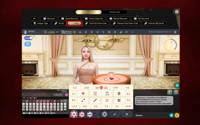 สัมผัสกับไฮโลเวอร์ชั่นภาษาไทย เกมนี้เรียกอีกอย่างว่าสูง-ต่ำ ต้นฉบับใช้ลูกเต๋าสามลูก ผู้เล่นเพียงแค่ทายว่าผลรวมของลูกเต๋าจะสูงหรือต่ำหลังจากเขย่า ด้วยความเป็นไปได้ในการเดิมพันที่หลากหลาย 1 โต๊ะเปิด คุณสามารถมีส่วนร่วมในกลยุทธ์ที่หลากหลายและเปิดรับความตื่นเต้นของไฮโล