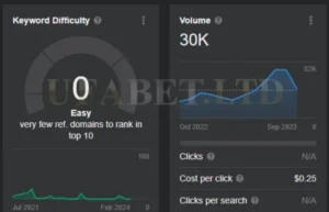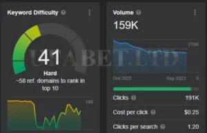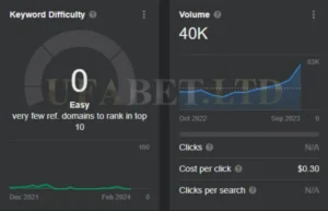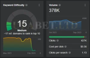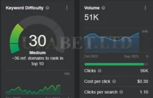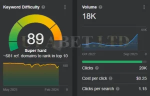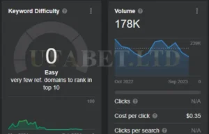 การวิเคราะห์เบื้องต้นของข้อมูลในปีที่ผ่านมาสำหรับคีย์เวิร์ด “Askmebet” บ่งชี้ว่าไม่มีความผันผวนอย่างมีนัยสำคัญหรือการมองเห็นที่โดดเด่น เริ่มต้นด้วยปริมาณการค้นหา 22,618 ครั้งในเดือนมกราคม 2023 และความยากของคีย์เวิร์ด (KD) ที่ 11 มีการลดลงอย่างเห็นได้ชัด และในที่สุดก็คงที่ที่ KD 0 แนวโน้มนี้ชี้ให้เห็นว่าทั้งการแข่งขันสำหรับคีย์เวิร์ดนี้และปริมาณการค้นหาโดยรวมลดลง อย่างไรก็ตาม เมื่อดูปริมาณการค้นหาย้อนหลังในเดือนตุลาคม 2022 พบว่ามีการค้นหาสูงสุด 37,017 ครั้ง ซึ่งตั้งแต่นั้นมาก็ลดลงเหลือประมาณ 22,000 ครั้ง ซึ่งลดลง 41% การลดลงนี้เห็นได้จาก KD ที่ผันผวนระหว่าง 0 ถึง 11 ตลอดปี 2023 ซึ่งลดลงอย่างมากจาก KD ที่ 64 ในเดือนตุลาคม 2022 สิ่งนี้บ่งชี้ว่าแม้ครั้งหนึ่งเคยเป็นคู่แข่งที่แข็งแกร่ง แต่ Askmebet อาจเผชิญกับความท้าทายในการสร้างสถานะที่แข็งแกร่งในตลาดไทยอีกครั้ง โดยเฉพาะอย่างยิ่งเมื่อเปรียบเทียบกับคู่แข่งอย่าง UFABET เว็บตรง