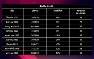 การวิเคราะห์ข้อมูลสำหรับ Fun88 เผยให้เห็นแนวโน้มที่มั่นคงโดยมีความผันผวนของตัวเลขโดยรวมน้อยที่สุด ปี 2023 เริ่มต้นด้วยจำนวนผู้ใช้ 397,530 คน