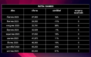 การมองเห็นบนโซเชียลมีเดียมีความโดดเด่น บ่งบอกถึงความพยายามที่จะสร้างตัวตนนับตั้งแต่ก่อตั้งในเดือนตุลาคม 2565 ภายในเวลาเพียงหนึ่งปี ปริมาณการค้นหา SIAM855 ก็สูงถึงตัวเลขที่มีนัยสำคัญ บ่งชี้ว่าอาจกลายเป็นคู่แข่งสำคัญในตลาดได้